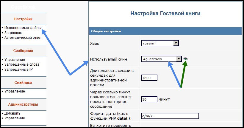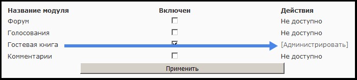 Далее нажмите кнопку-ссылку [Администрировать] напротив Гостевой книги