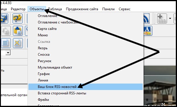 Для этого установите, пожалуйста, курсор в место, где Вы желаете разместить Ваш блок RSS-новостей и перейдите в меню Конструктора: Объекты - Ваш блок RSS-новостей