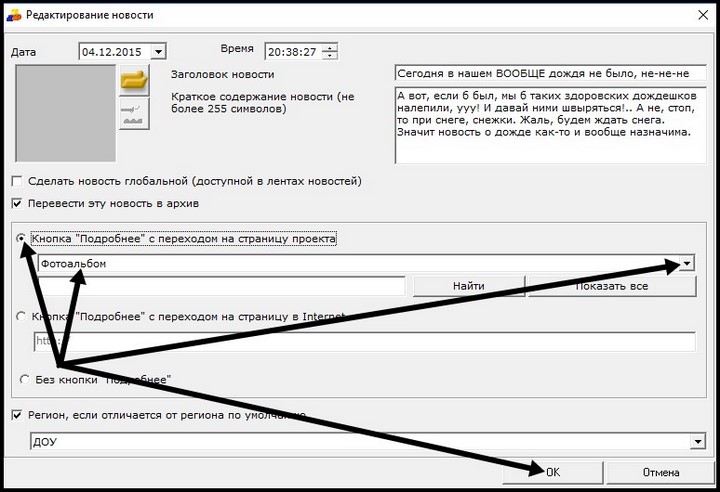 1.2. Ужмите, пожалуйста, исходные прикрепляемые к проекту изображения до размеров, указанных Вами в свойствах прикрепляемого к новости изображения (чтоб программе не приходилось тратить ресурсы компьютера на обработку размеров изображений).
