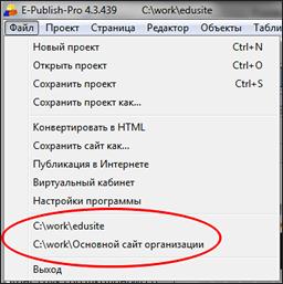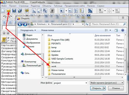 Чтобы открыть проект, надо: 1. открыть Конструктор сайтов E-Publish;