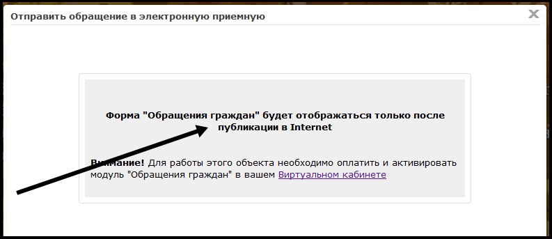 То есть для того, чтоб модуль отображал форму обращения граждан, необходимо: