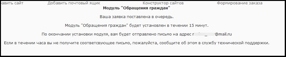 Нажав кнопку [Установить], Вы увидите сообщение системы о том, что заявка на активацию модуля поставлена в очередь.