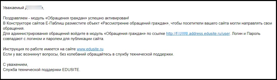 На данном этапе активация модуля "Обращение граждан" в виртуальном кабинете завершена.