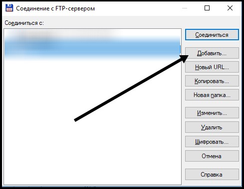 | В появившемся окне, для установки настроек соединения, нажмите, пожалуйста, кнопку "Добавить" |