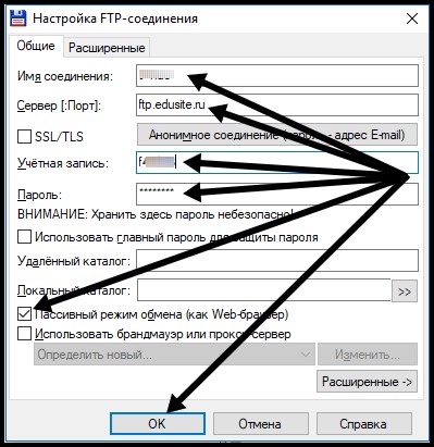 Сервер (Порт) - ftp.edusite.ru