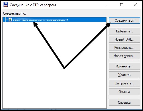 Важно: При последующих соединениях с тем же сайтом, заново вносить настройки соединения не нужно. Достаточно просто вызвать окно соединения, выбрать соединение и нажать кнопку "Соединиться"