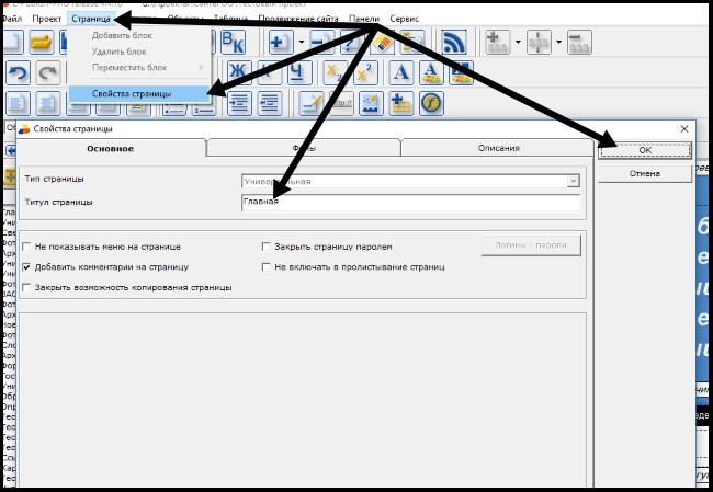 Для этого, перейдя на необходимую страницу в Конструкторе, пройдите, пожалуйста, в меню Конструктора: Страница - Свойства страницы.