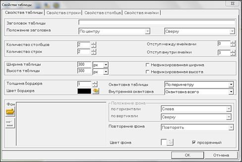 Внимание: чтобы вставить цвет фона таблицы, надо снять галочку «Прозрачный».