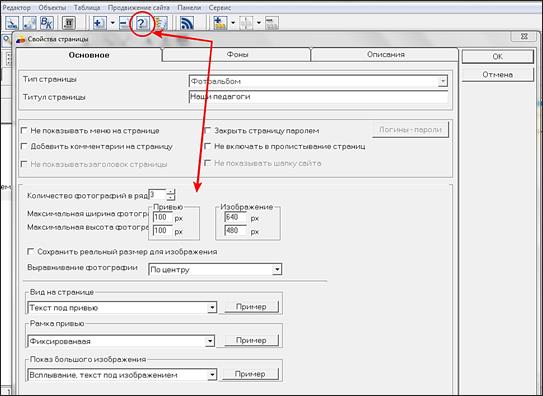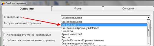 Откроется окно настроек для страницы типа «Фотоальбом».