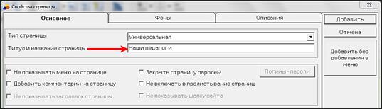 В поле «Титул и название» введите название страницы, например «Наши педагоги» | |
