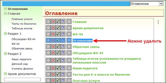 В результате добавится список названий страниц с чекбоксами | |