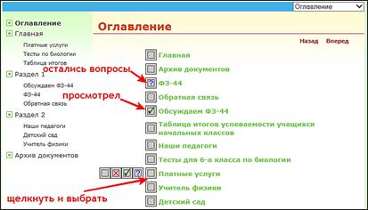 Чтобы увидеть, как работают чекбоксы, надо сконвертировать проект. Вот так могут работать с вашим оглавлением ваши посетители | |