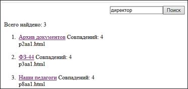 Конструктор сайтов предоставляет пользователю возможность контекстного поиска информации по сайту. Иными словами, вы вводите фрагмент слова или фразы в окно поиска, а система показывает страницы.