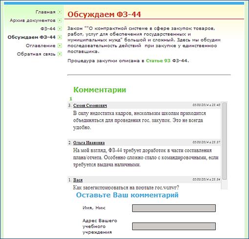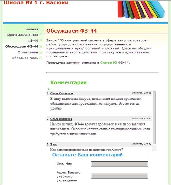 После публикации в сети Интернет посетители вашего сайта смогут оставлять свои комментарии: | |