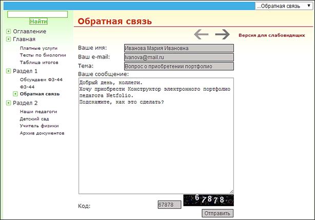 В отличии от «Комментариев к странице сайта», где сообщение каждого посетителя доступны всем другим, модуль «Отправка сообщений на электронную почту» пересылает сообщение посетителя только вам.