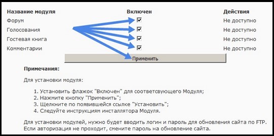 Для настроек Форума пройдите, опять же, в [Дополнительные модули] в Вашем виртуальном кабинете и нажмите кнопку "Администрировать" напротив Форума. Система запросит логин и пароль. Это ваши логин и пароль для публикации, либо для входа в виртуальный кабинет (зависит от года создания виртуального кабинета).