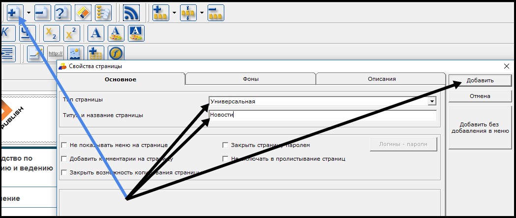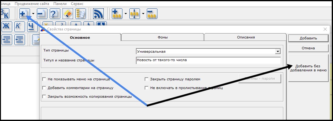 Также можно для RSS-ленты добавить к проекту отдельную страницу, назвав её при добавлении к проекту, к примеру, "Новости", или "Лента новостей". Для этих целей подойдет типовая страница "Универсальная" |