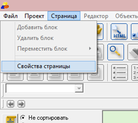 Для этого откройте страницу, выберите меню "Страница", пункт "Свойства страницы": |