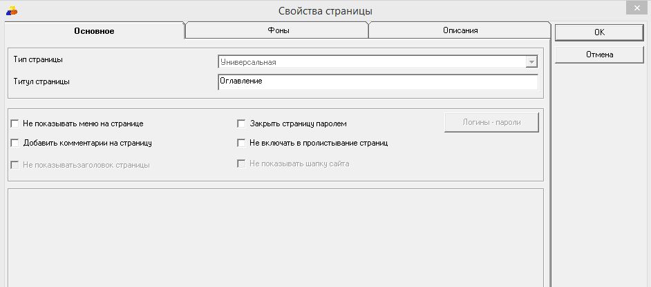 Для этого откройте страницу, выберите меню "Страница", пункт "Свойства страницы": | |