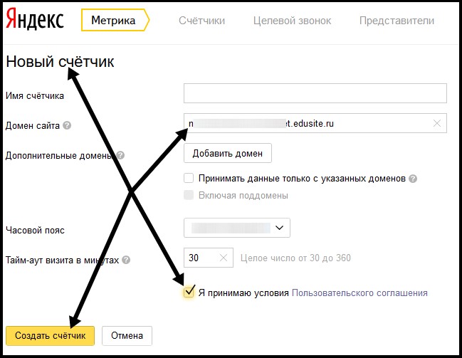 Перейдя на страницу добавления счетчика, пропишите адрес Вашего сайта и согласитесь с условиями пользовательского соглашения |