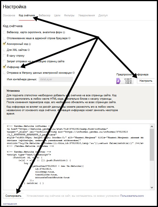 Установите, пожалуйста, необходимые Вам, настройки; выберите вид счетчика посещений и нажмите кнопку "Скопировать" | |
