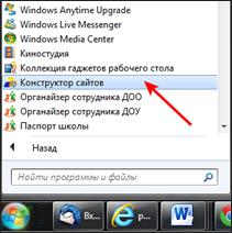 | Другой способ: выберите меню «Пуск» - «Конструктор сайтов» |
