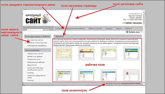 На приведенном выше сайте отсутствует поле верхнего горизонтального меню, правого вертикального, нижнего горизонтального. Сайты могут отличаться по оформлению, виду меню и особенно в рабочем поле. Однако, они имеют описанную выше структуру.