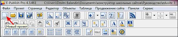 Для создания проекта своего сайта щелкните по кнопке «Новый проект» в левом верхнем углу экрана | |